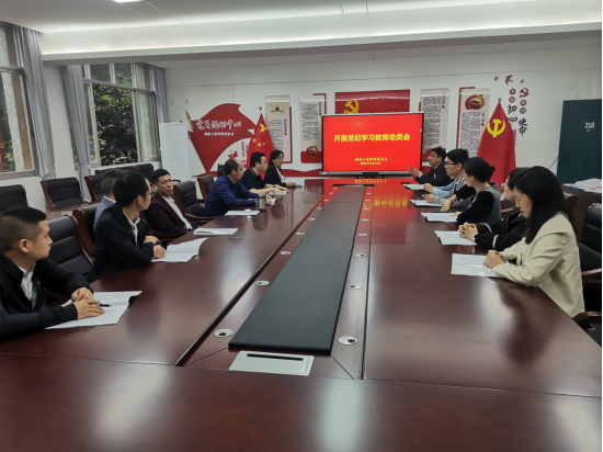 会上,彭欣建传达领学习近平总书记关于开展党纪学习教育的重要讲话和重要指示精神,以及党中央和教育部党组、省委常委会、省党纪学习教育工作专班有关会议精神和工作要求,对《九江职业技术学院党纪学习教育工作提示》进行解读,并带领与会人员进行了学习,强调了此次学习教育活动的重要性。