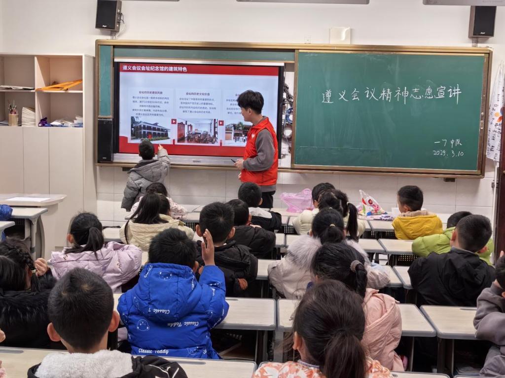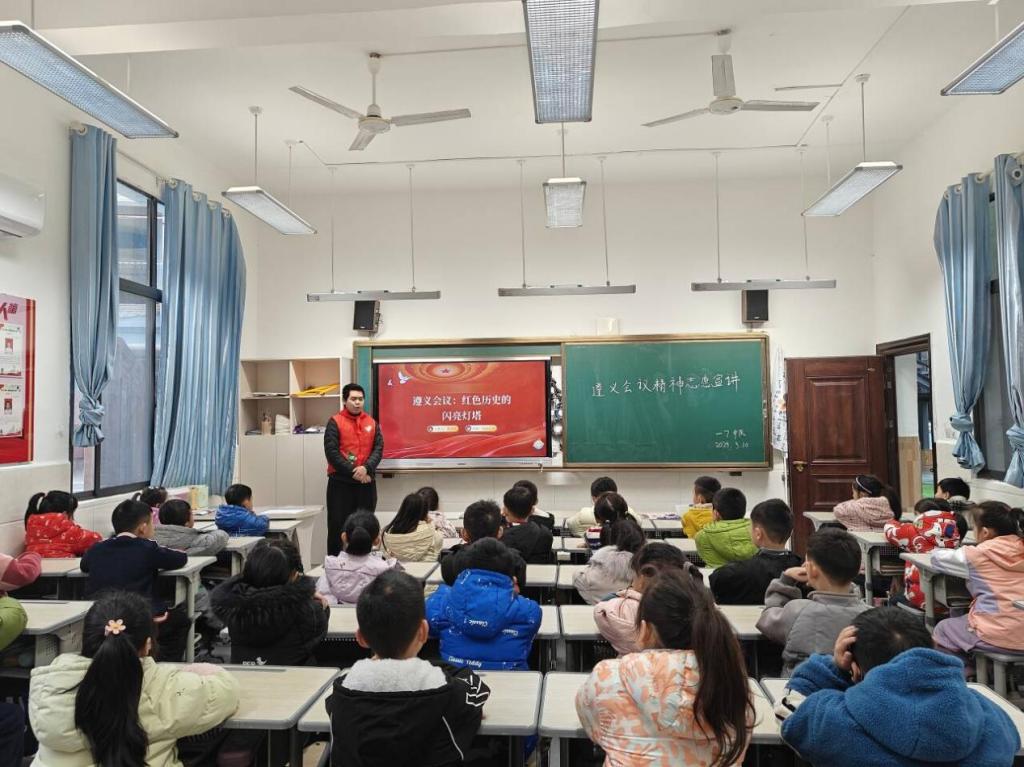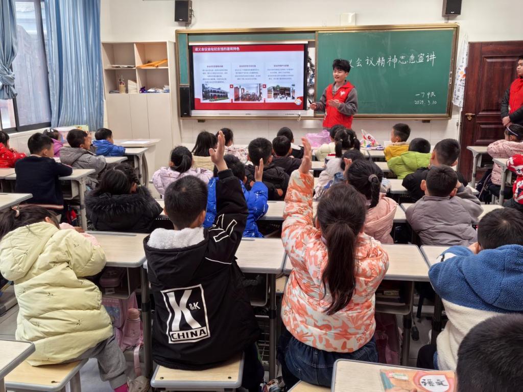 为了让孩子们更深刻地理解遵义会议的重要意义,宣讲团成员们化身为“故事大王”,他们以亲切活泼的语言和生动形象的表达方式,将红军战士在艰难环境中坚定信念、勇往直前的感人事迹娓娓道来。孩子们听得津津有味,在一个个故事中初步领略了遵义会议精神的深刻内涵,红色的种子悄然在幼小的心灵深处生根发芽。