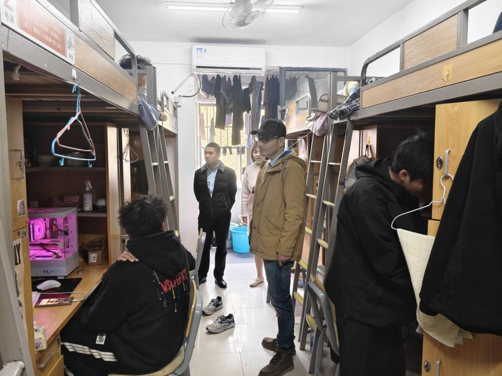 检查过程中,李明华副院长与同学们进行了深入交流,详细了解学生们的生活需求,认真听取大家对宿舍管理工作的意见建议。他特别叮嘱同学们要时刻绷紧安全这根弦,积极参与到“人走电断、隐患自查”的安全自治行动中来。