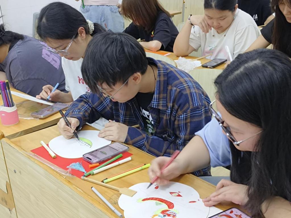 5月28日的创意工坊活动中,“非遗团扇绘龙舟”与“智造纸船竞风流”成为亮点。TCL空调2401班陈琳同学创作的“粽香龙舟扇”将船舶元素与端午意象巧妙融合;船舶智能制造2401班魏智炀和蔡俊辉运用专业所学,制作的“郑和宝船”纸模赢得满堂喝彩。活动现场笑语盈盈,粽叶清香与创意火花交相辉映。