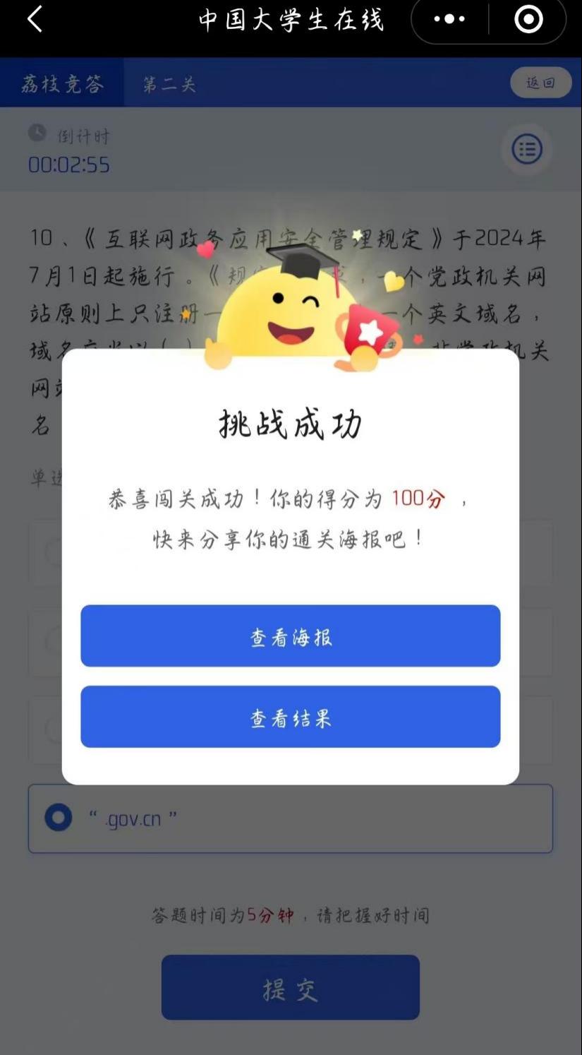 9月15日起至26日,学院还全面动员学生参与“全国大学生网络安全知识竞赛”。通过中国大学生在线官网及微信公众号平台,同学们踊跃参加线上答题,在闯关过程中进一步巩固了对防范网络诈骗、拒绝非法校园贷、安全使用网络等知识的理解,实现了“以赛促学、以学促用”的宣传教育效果。