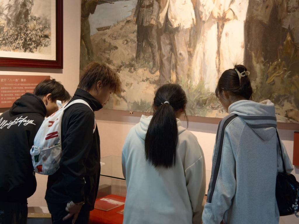 活动首站设在南山公园内的九江革命烈士纪念馆。馆内丰富的历史图片与珍贵文献资料,生动再现了赣北地区革命斗争的壮阔历程,展现了革命先烈不畏艰险、不怕牺牲的崇高精神。同学们认真聆听讲解,不时驻足凝视,在庄重肃穆的氛围中,深刻感悟共产党人的初心与使命,接受了一次触及灵魂的思想洗礼。