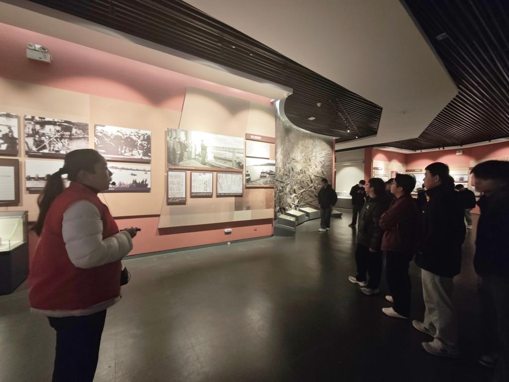 参观过程中,同学们聚精会神,不时驻足交流,沉浸在浓厚的历史氛围里。辅导员宋歌结合船舶工程专业特色,特别引导同学们关注九江作为重要港口城市在长江航运史、“一带一路”倡议中的地位,激励大家将专业学习与国家水运事业、地方发展需求紧密相连,从历史中汲取智慧与力量。