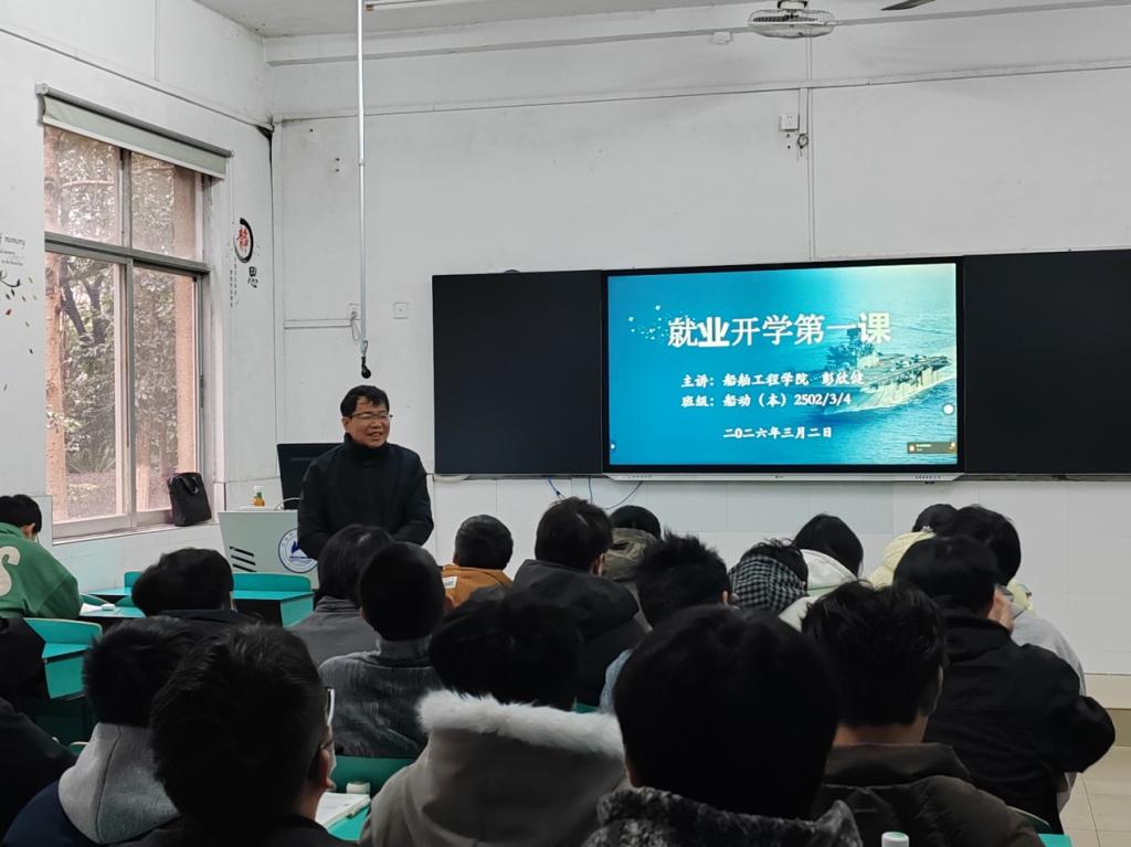 为深入贯彻党中央、国务院和省教育厅决策部署,把就业工作当作中心工作来做,3月2日,船舶工程学院党总支书记彭欣健为2025级船舶动力工程技术本科专业学生做“开学就业第一课”主题讲座。