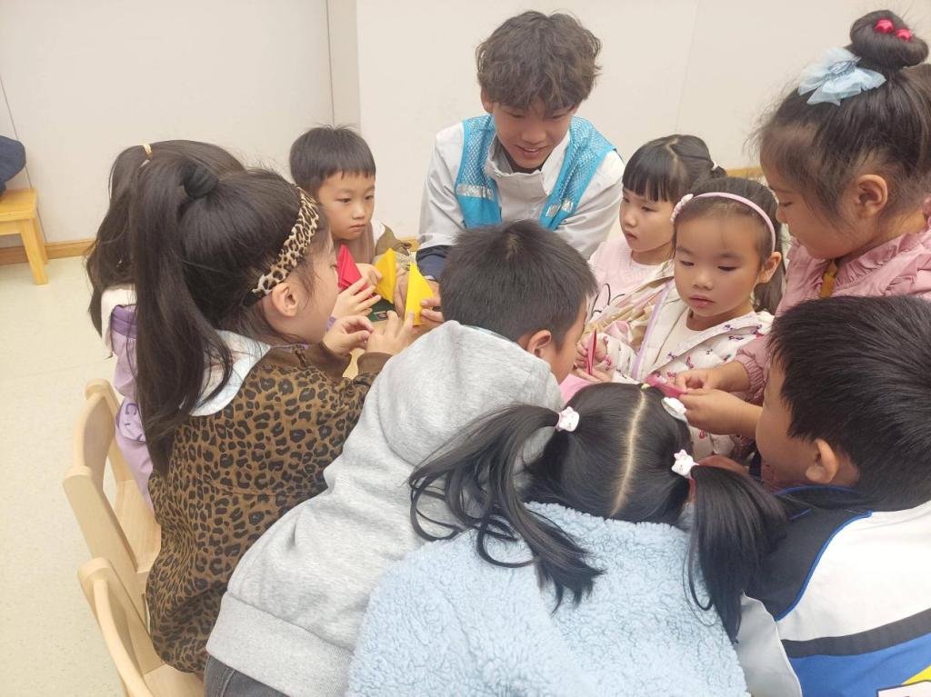 在船舶工程学院凌云霞飞、江明两位老师的带领下,志愿者们充分发挥专业特长,以饱满的热情带领孩子们开启了一段有趣的船舶探索之旅。活动围绕“拓展视野、激发兴趣、培养热爱”的目标,精心设计了“认识船舶”与“动手折船”两大环节。志愿者们用浅显生动的语言介绍船舶类型与结构,引导孩子们在聆听讲解和动手实践中感受船舶文化的魅力,激发他们对海洋世界的好奇。